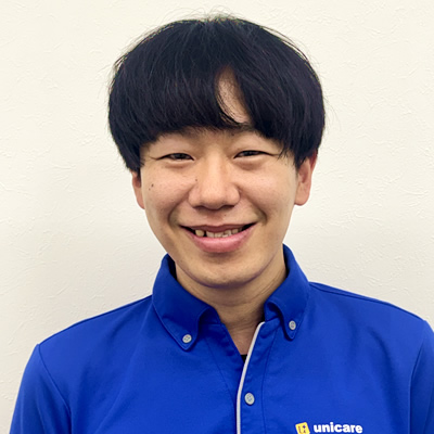 病院で理学療法士として勤務した後、訪問リハビリテーションで勤務をしてきました。在宅で生活する方のリハビリに携わる中で、利用者様に関わる他職種、他事業所との連携の重要さを知りました。ユニケアは訪問看護ステーションからのリハビリということで、看護師との連携はもちろん、関連機関との連携も十分にとりながら、利用者様が安心して在宅生活を送れるよう支援していきます。アラフォーですが、通勤、訪問ともにママチャリで頑張っています!